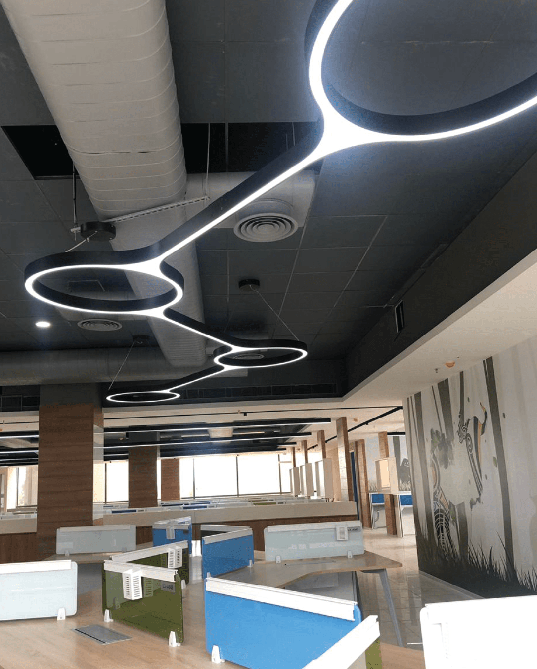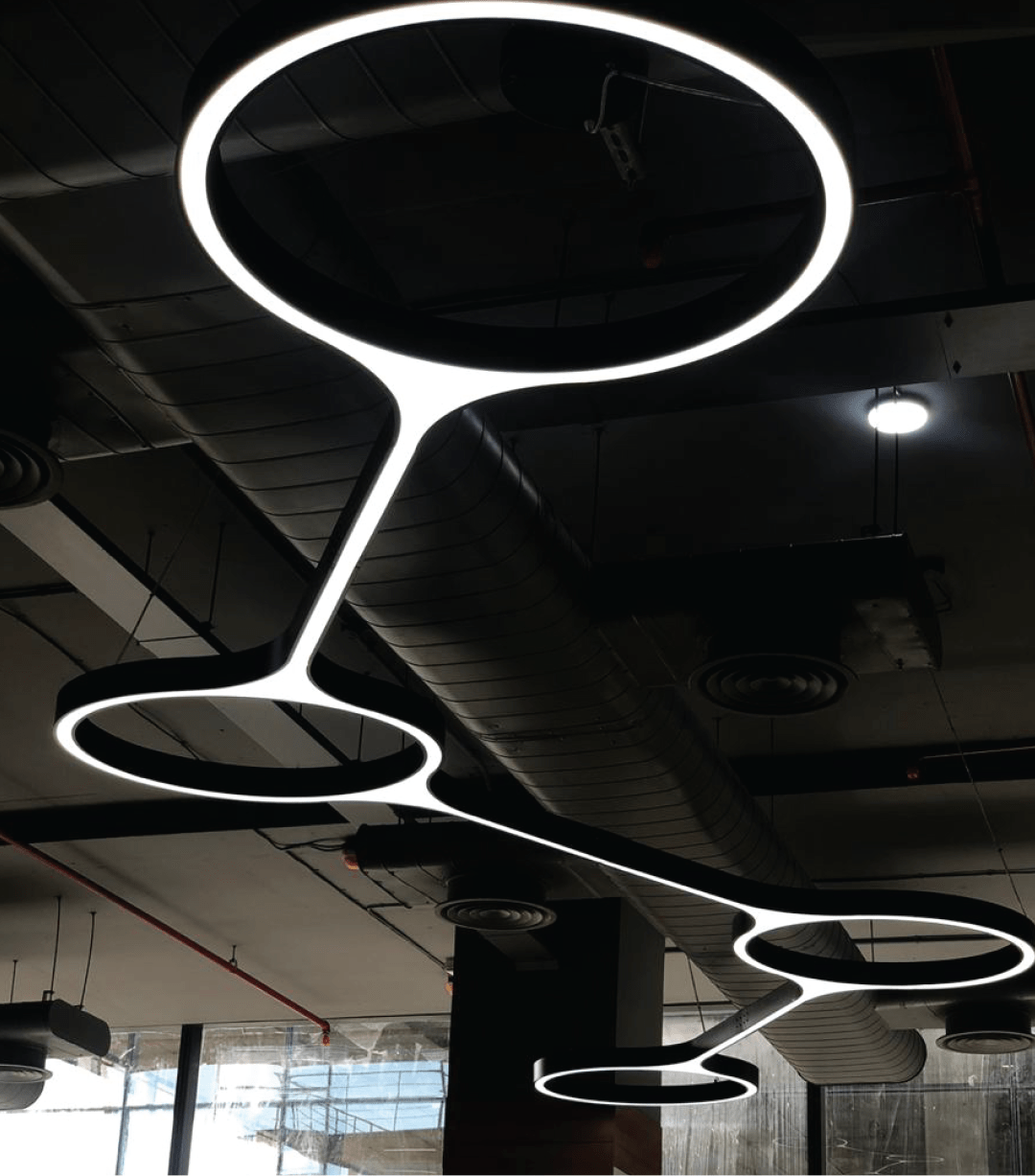 At Bosch Coimbatore, we designed a workplace that integrates unique suspended lighting fixtures, enhancing both functionality and aesthetics. Our approach features a variety of uniquely shaped suspended lights, complemented by spotlight decorative elements. This combination creates a dynamic and inspiring environment that promotes productivity while adding a touch of modern elegance to the office space. The thoughtful lighting design ensures that employees have a bright and engaging atmosphere conducive to collaboration and creativity.