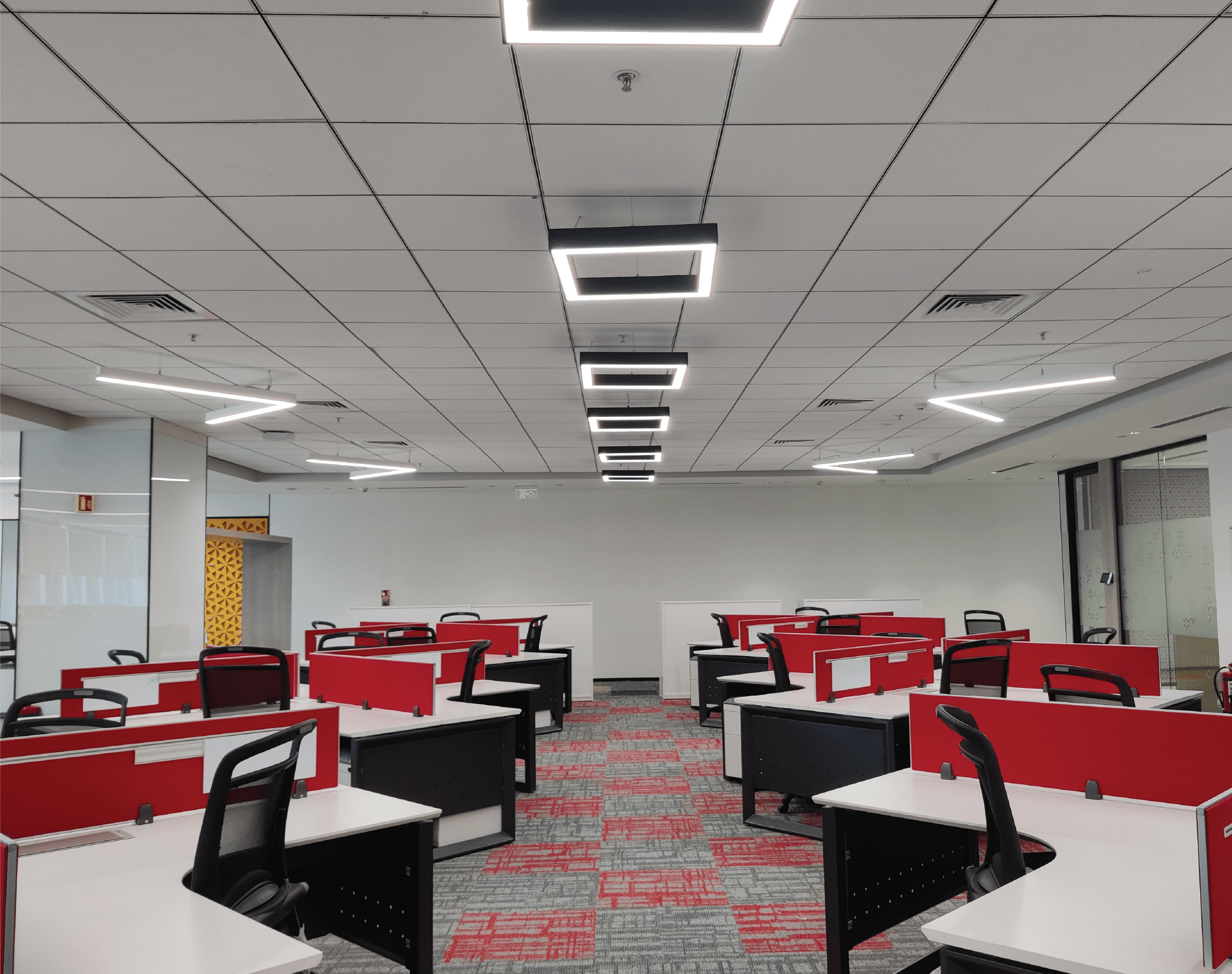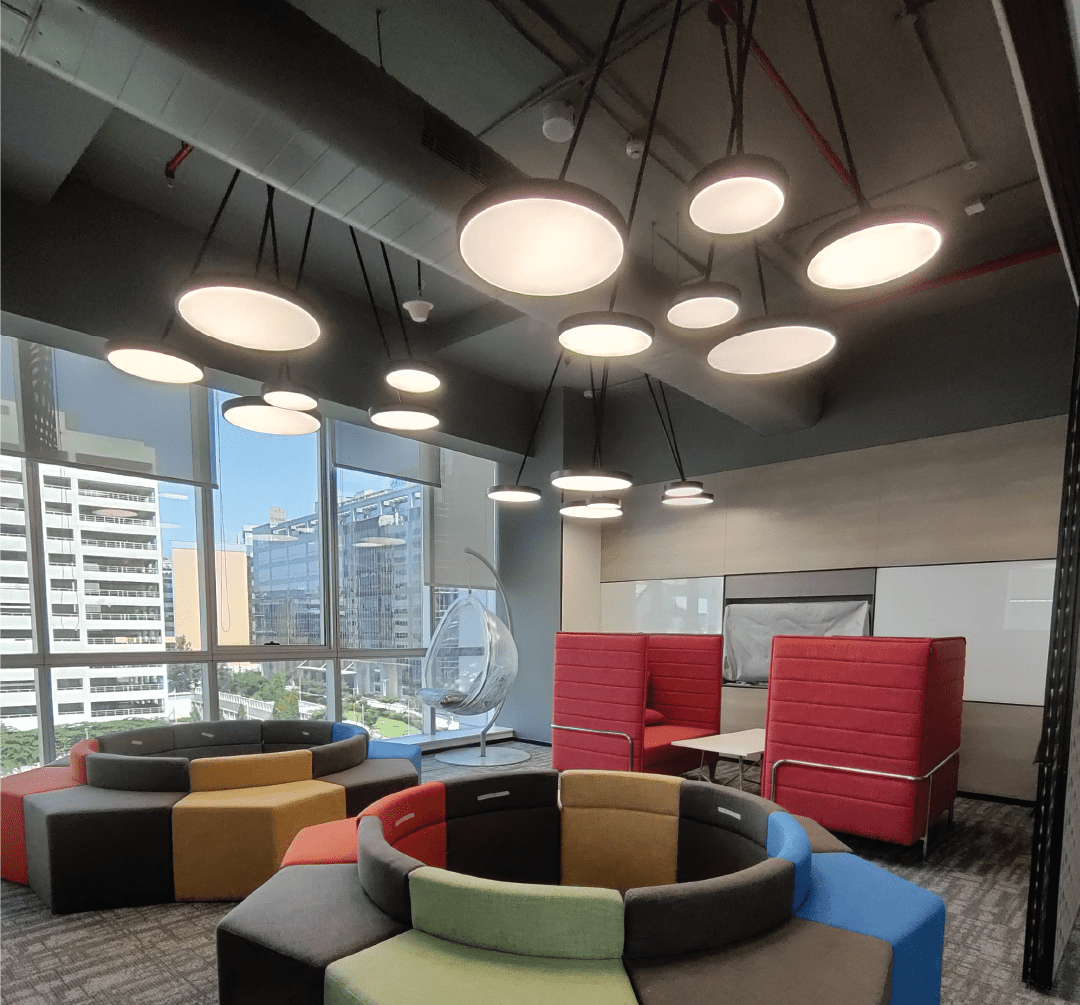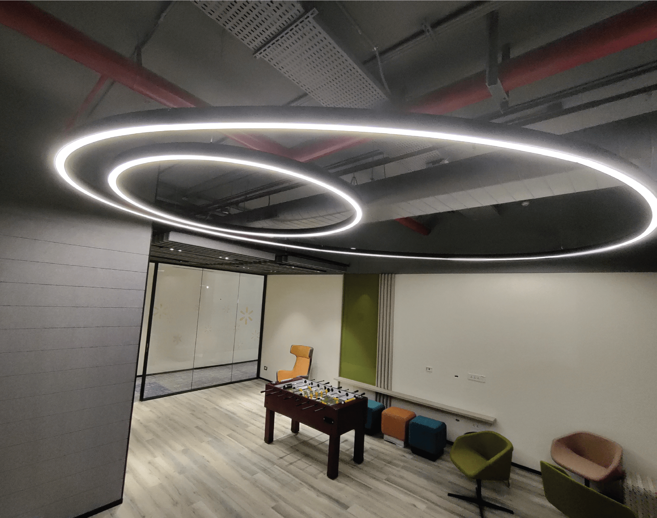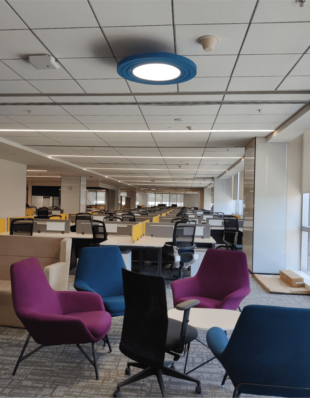 For Walmart, we created custom lighting solutions tailored specifically for their modern office spaces, enhancing both functionality and employee comfort. Our design incorporates large, modern circular diffusers and spotlights to provide a balanced lighting environment that promotes productivity while also allowing employees to relax. This thoughtful approach ensures that the workplace is inviting and conducive to collaboration, making it an ideal setting for creativity and innovation.