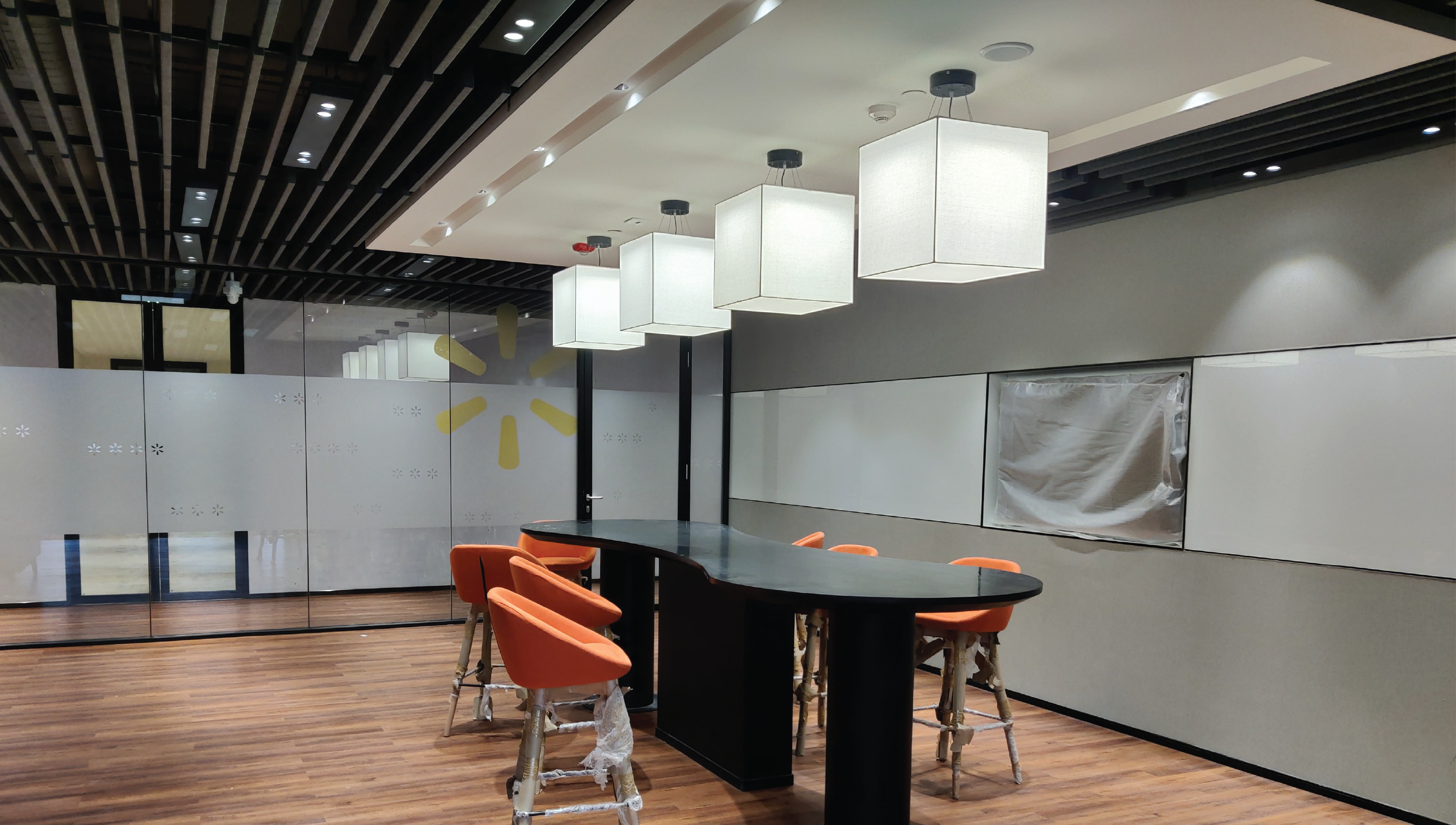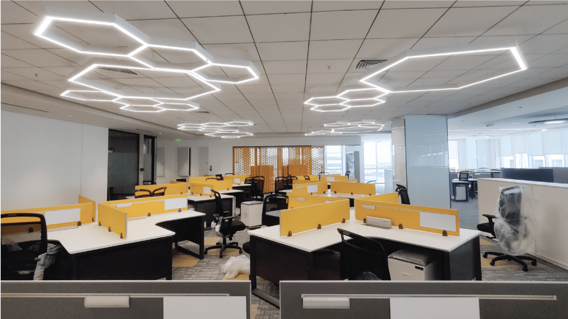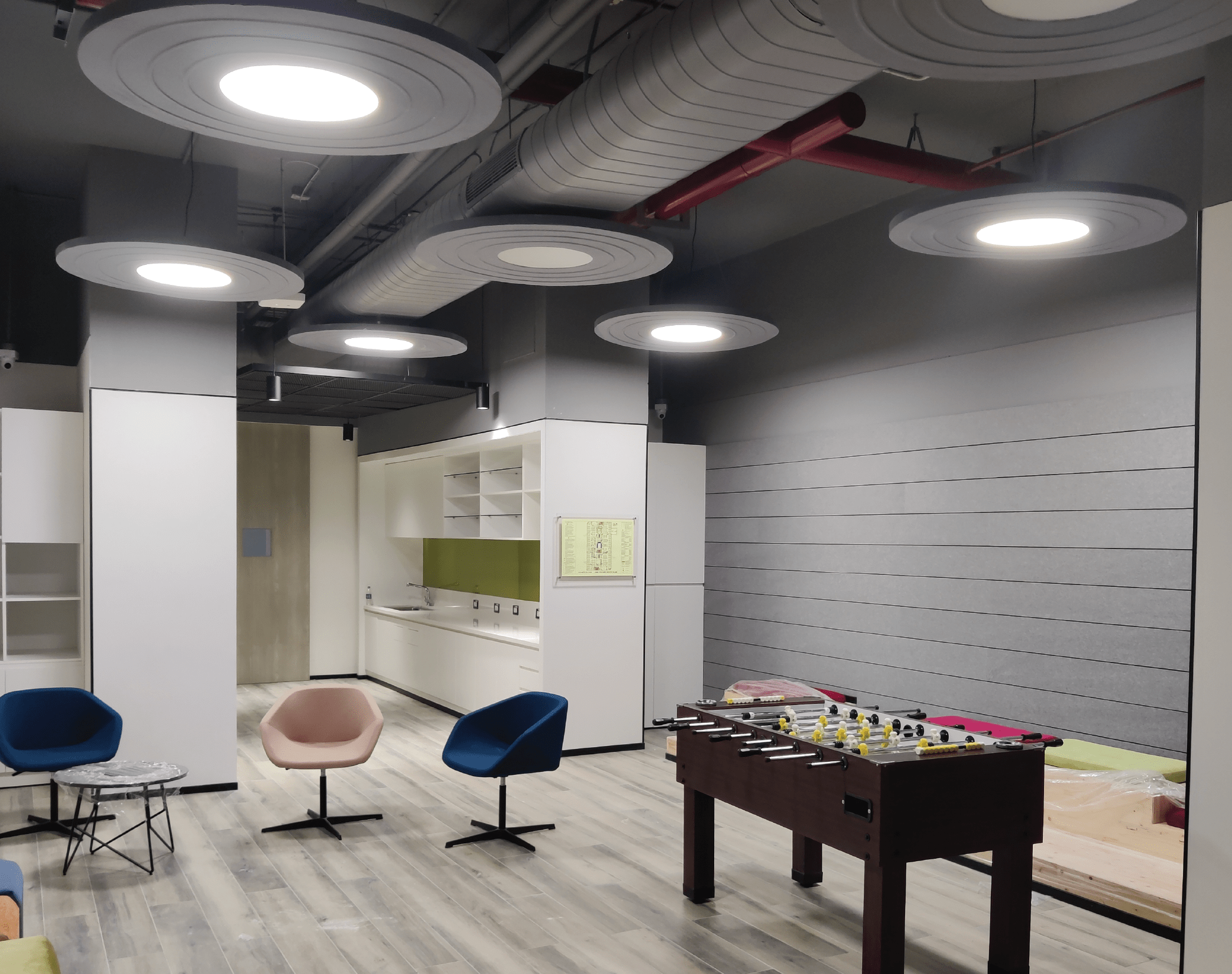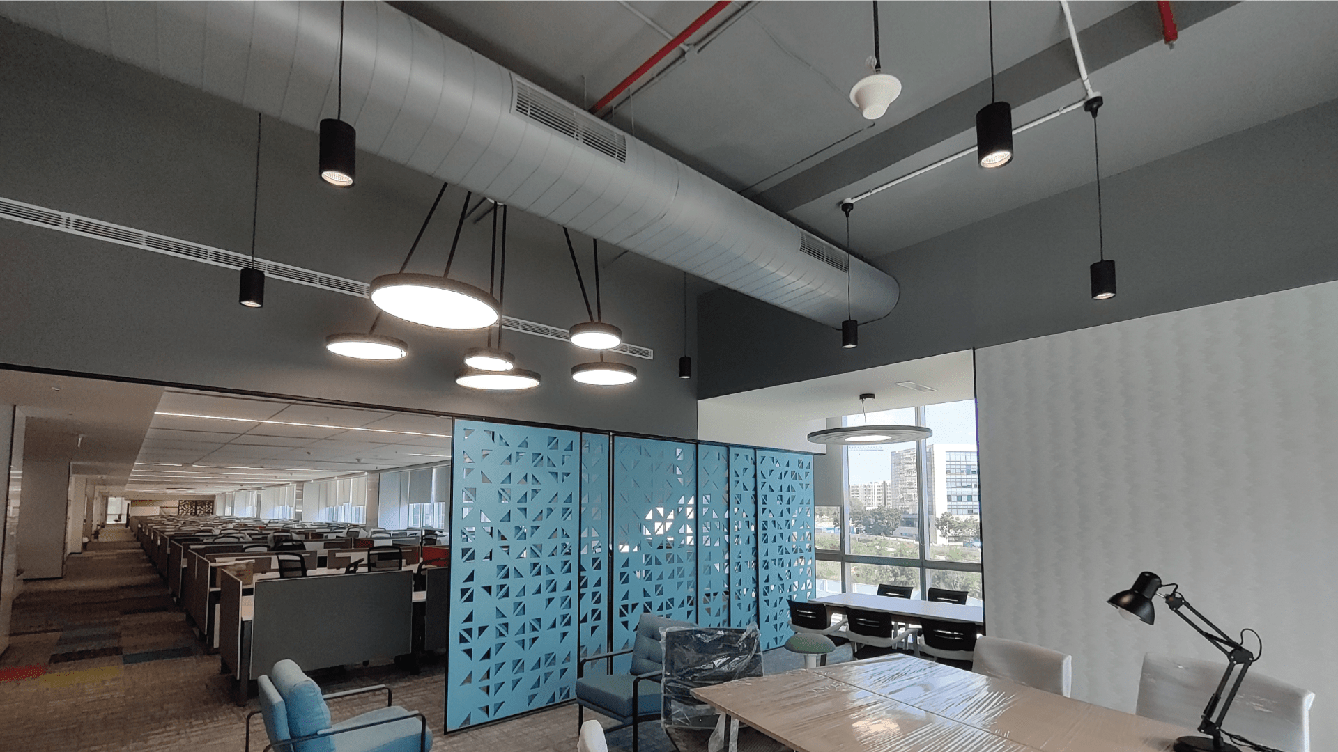 For Walmart, we created custom lighting solutions tailored specifically for their modern office spaces, enhancing both functionality and employee comfort. Our design incorporates large, modern circular diffusers and spotlights to provide a balanced lighting environment that promotes productivity while also allowing employees to relax. This thoughtful approach ensures that the workplace is inviting and conducive to collaboration, making it an ideal setting for creativity and innovation.